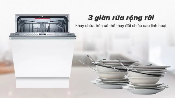 Với thiết kế âm tủ gọn gàng, công nghệ rửa tiên tiến giúp tiết kiệm thời gian và lượng nước tiêu thụ cùng những tính năng tiện lợi, máy rửa chén âm toàn phần Bosch SMV4HCX48E là cánh tay phải đắc lực cho chị em nội trợ hoặc những người bận rộn với công việc.